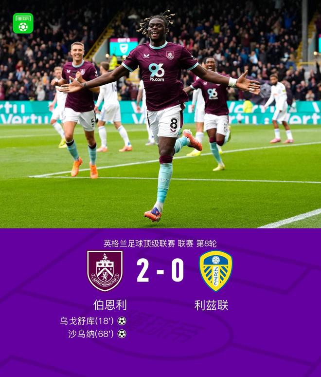 北京时间10月18日,英超联赛第八轮开始。伯恩利主场迎战利兹联。比赛中,凯尔·沃克精准助攻,让雨果·舒克率先进球,为伯恩利取得领先机会。下半场,弗洛伦蒂诺·鲁伊斯送出重要传球,绍纳精彩射门再进一分。凭借这两粒进球,伯恩利将优势保持到终场,2-0击败利兹联全取三分。关键比赛第18分钟,乌戈·祖库接凯尔·沃克传球头球破门,取得领先。伯恩利1-0获胜。米格专门观看英超联赛。第68分钟,绍纳突然外围射出冷箭。球像炮弹一样击中球门。伯恩利2-0获胜。独家观看英超联赛的精彩时刻。两队球员入场,派对即将开始。去找米格吧看看英超联赛就知道了。第18分钟,凯尔·沃克传球。宇后宿上前头球攻门。伯恩利1-0。去找米格吧看看英超联赛就知道了。第32分钟,哈里森传中后阿龙森推射,但被门将触碰。球从门柱上弹了回来。第52分钟,杰登·安东尼表达了对判罚的不满。裁判对他出示了一张黄牌警告。第68分钟,绍纳外围突然射出冷箭,皮球像炮弹一样直奔球门,伯恩利2-0战胜米奇队。看看英超联赛就知道了。第80分钟,古德蒙德森左路传中,努梅加头球攻门偏出。米格独家观看英超球队阵容技术统计【米格独家观看英超】